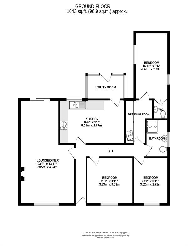 A beautifully presented, extended, three bedroom detached bungalow in a popular location. The property has been well maintained throughout and includes a spacious lounge dining room as well and a kitchen breakfast room. The bedrooms are all well proportioned with the master bedroom having a dressing room and ensuite WC. The kitchen and bathrooms have attractive modern fittings with the bathroom being upgraded in 2024. There are double glazed windows throughout, the property is warmed via gas central heating and there is also a useful utility room. Externally there are garden to the front and rear which are relatively low maintenance and a detached garage.