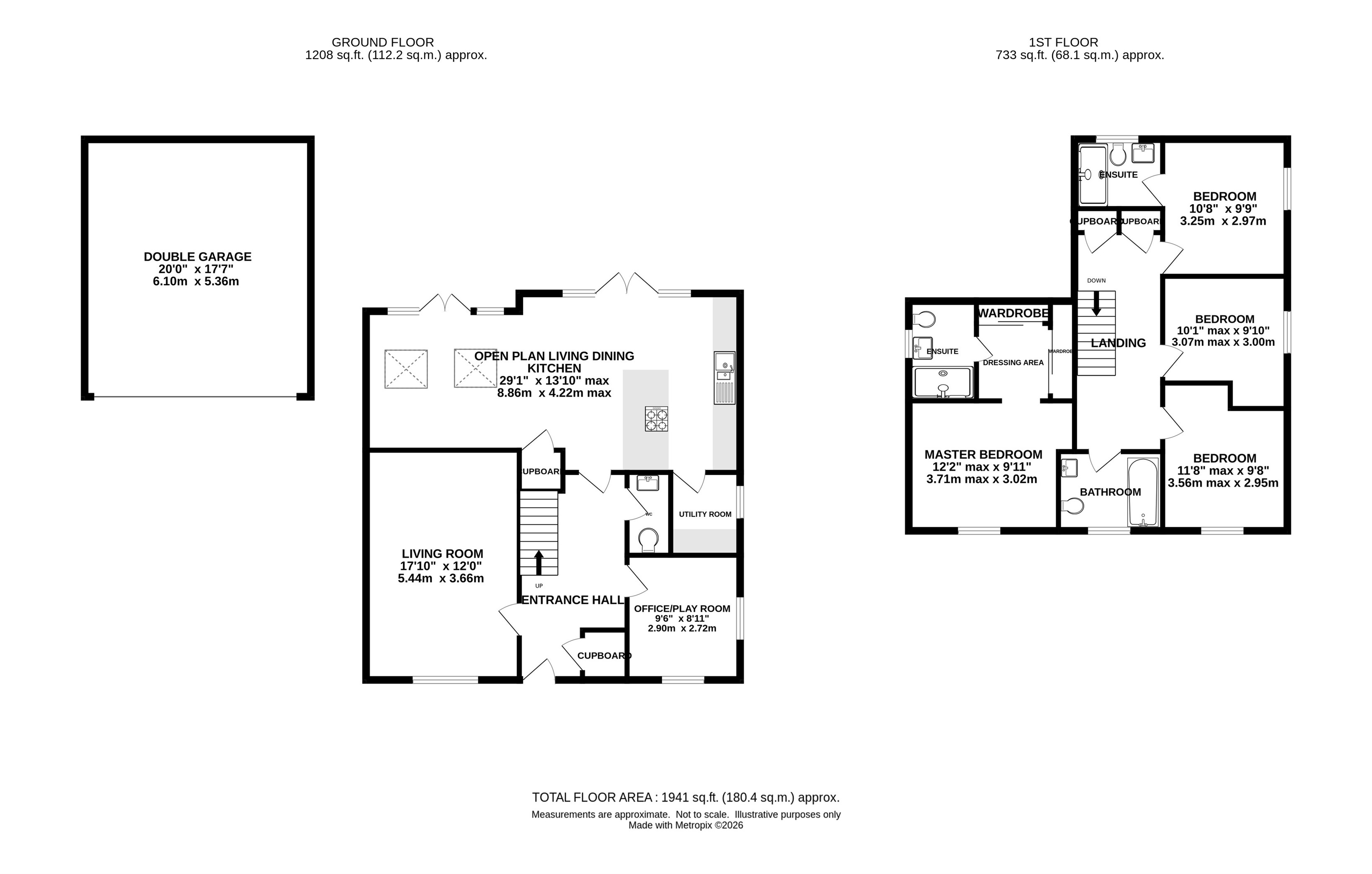 Spacious four bed detached home with double garage, impressive open plan living dining kitchen, three bathrooms (two en-suites), south facing garden, ample parking and open views in a sought after, peaceful location.