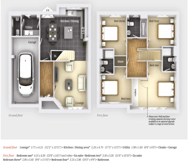 Impeccably presented energy efficient detached house with no passing traffic, offering a modern layout, two en suite shower rooms, open plan kitchen diner and superb landscaped garden